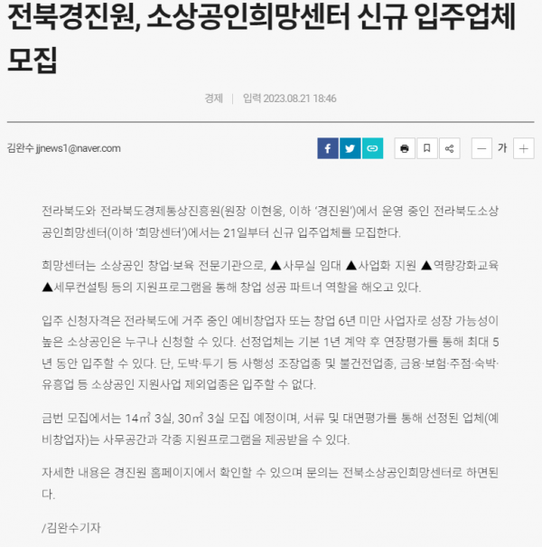 2023. 8. 21. 소상공인희망센터 제5차 신규입주 모집