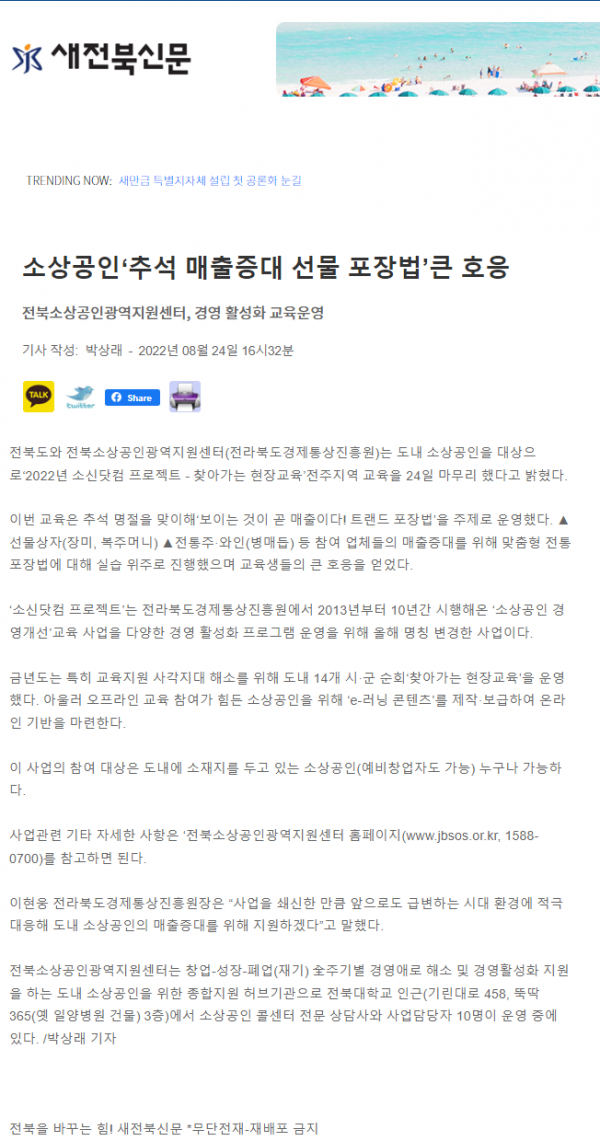 [소신닷컴프로젝트] 소상공인‘추석 매출증대 선물 포장법’큰 호응