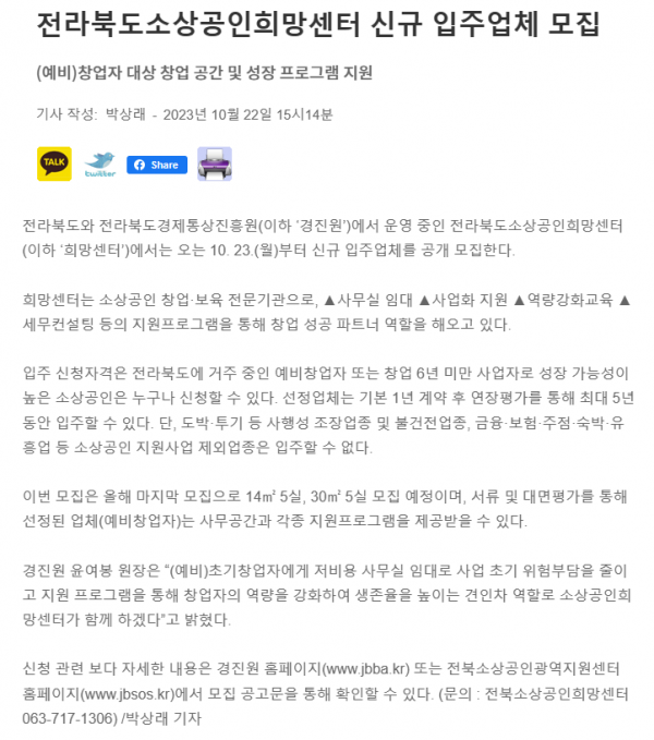 2023. 10. 23. 소상공인희망센터 제6차 신규입주 모집