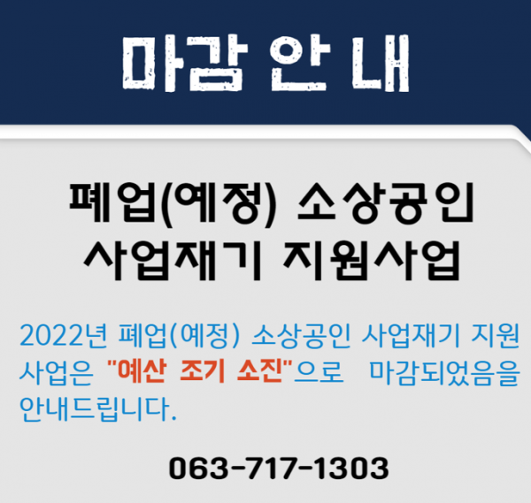 [신청마감] 2022년 폐업(예정)소상공인사업재기지원사업